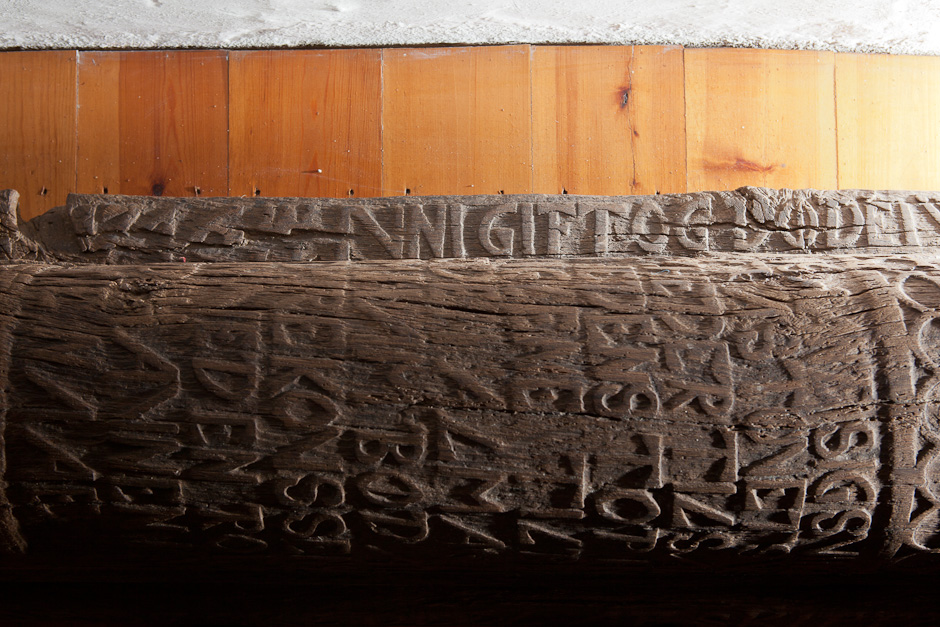 På træets overflade står et gravvers: