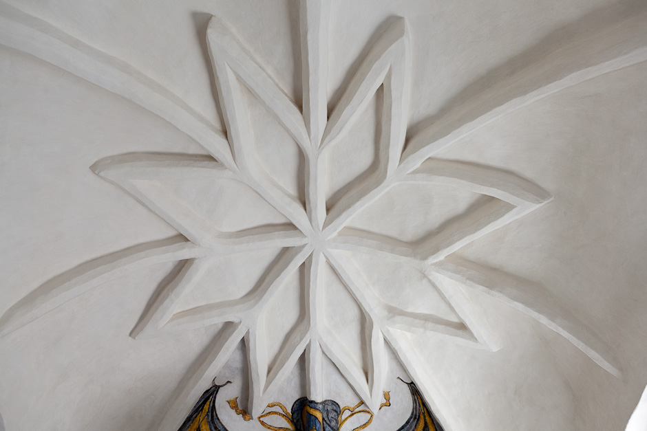 Stjernehvælvet er rigt udarbejdet ligesom hvælvene i skibet.