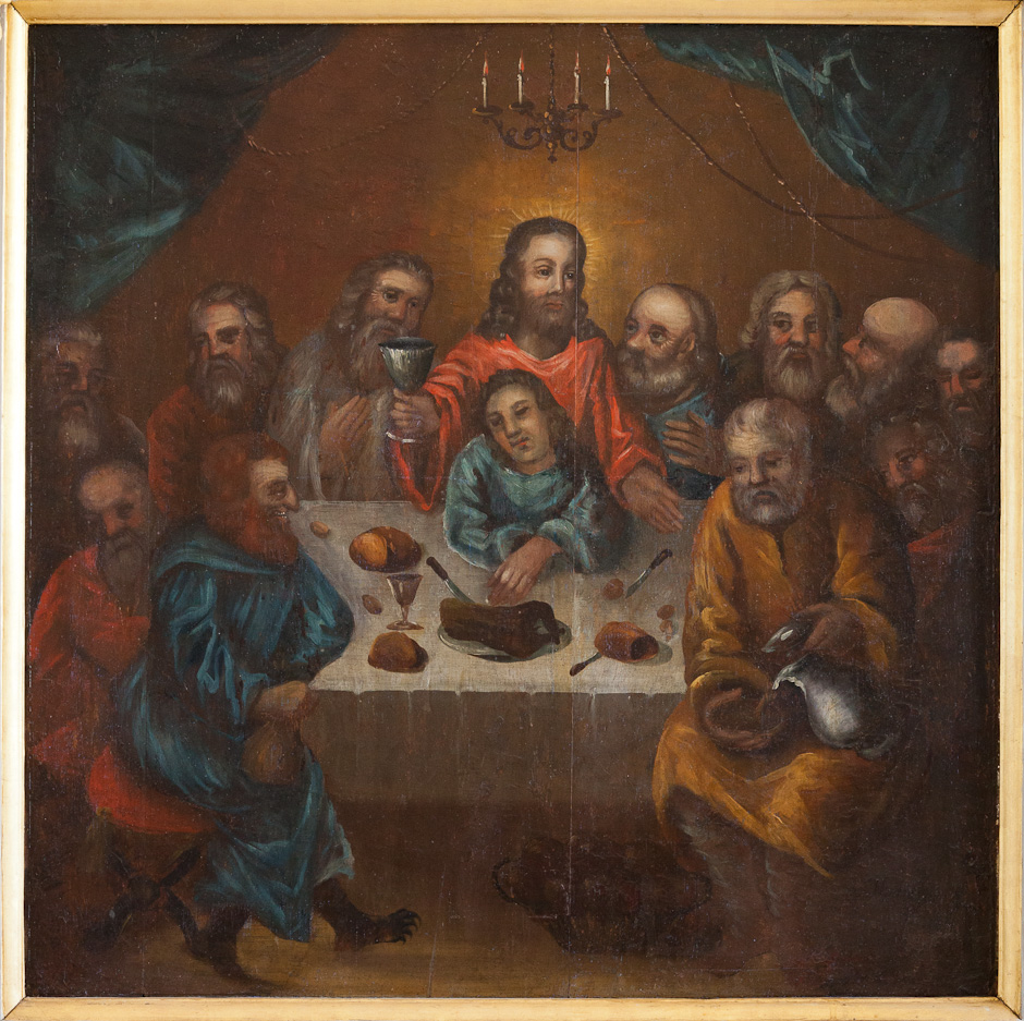 Ved en restaurering af altertavlen i 1927 ved konservator Povl Jensen blev det nuværende alterbillede fra 1724, Nadverens indstiftelse, opdaget. Ved undersøgelse af billedet fandt Povl Jensen spor af et ældre billede, måske endda to.