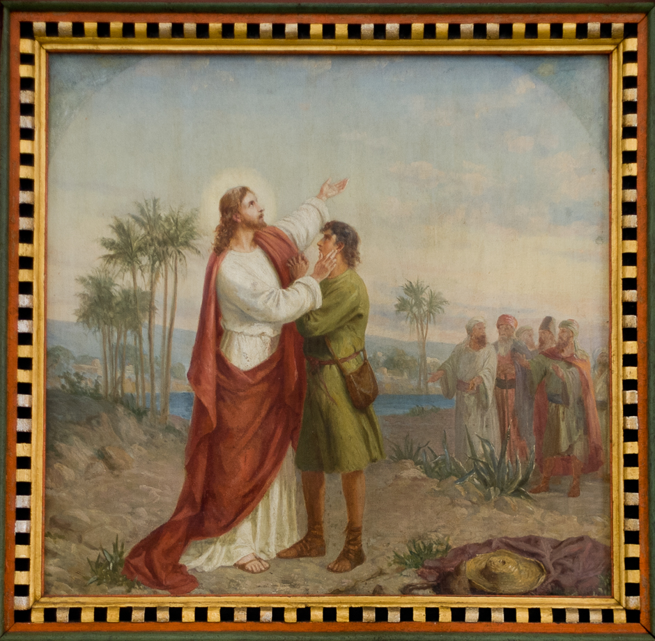 Alterbilledet er udført af Anker Lund i 1898: Jesus helbreder en døvstum, Mark. 7.