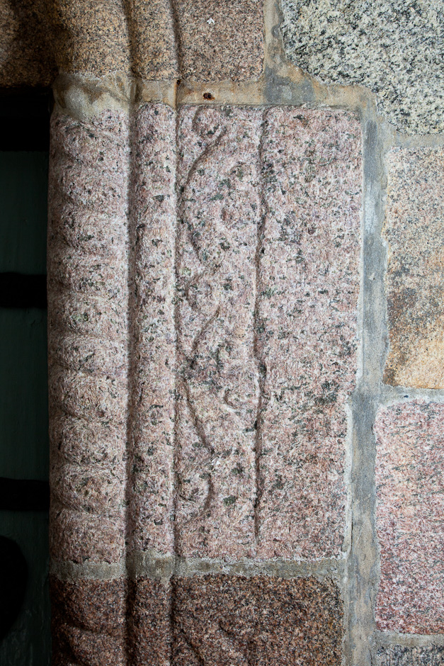 Portalen består af en tympanon og karmsten, som er kantet af en kraftig tovsnoning og en svagere rundstav. I tympanonfeltet ses to modstillede løver. På karmstenene er der et rankerelief.
