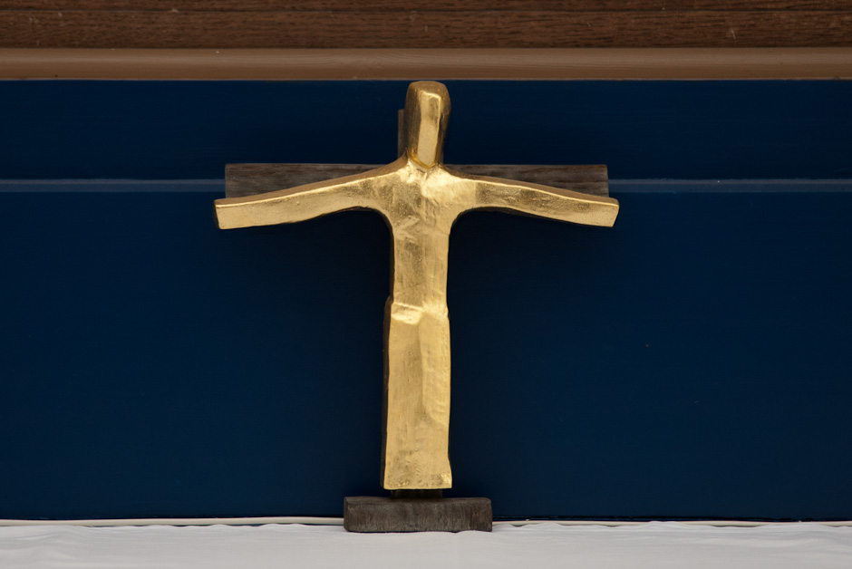 Krucifixet på alterbordet er udført af Erik Heide.