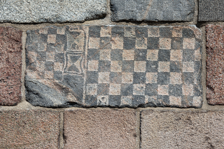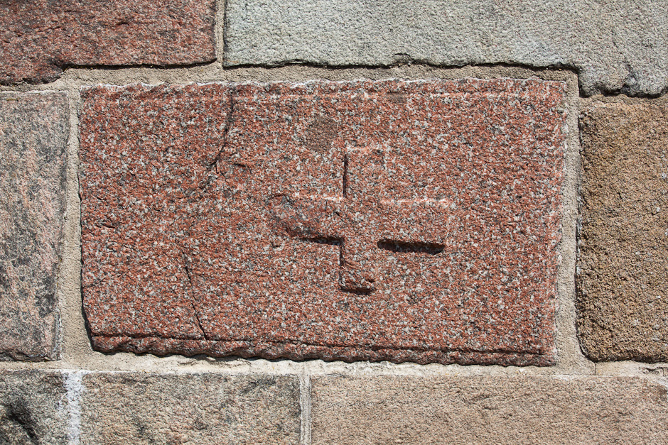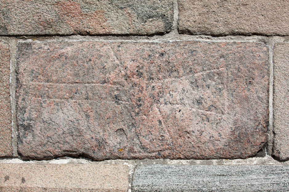 Brudstykke af romansk gravsten. Den er kantet med en tovsnoning og har et kors i ophøjet relief. Indmuret i sydmuren.