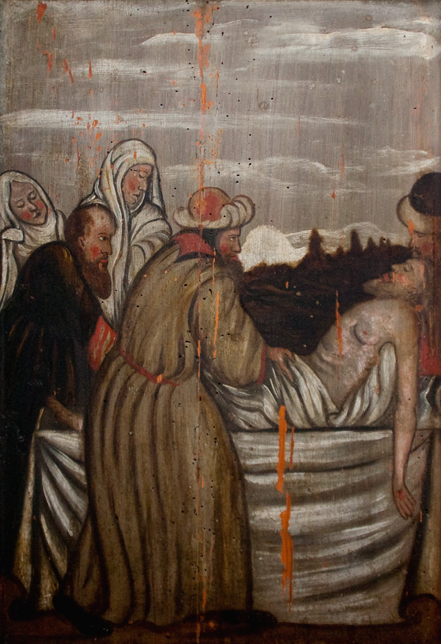 Disse billedfelter er i dag anbragt bag siddepladserne på nordvæggens pulpitur, men de har oprindelig været en del af dette pulpitur, der har omfattet i alt 31 billedfelter.