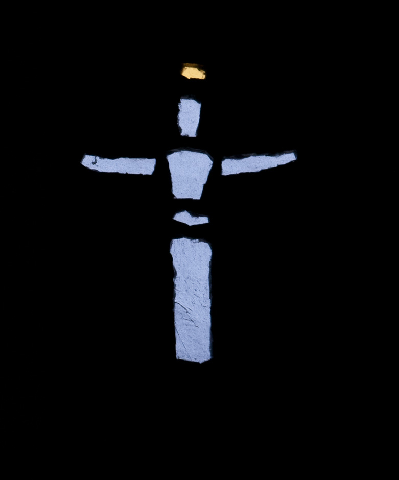 Det oprindelige østvindue var tilmuret, men blev genåbnet for at give plads til Erik Heides Kristus-figur.