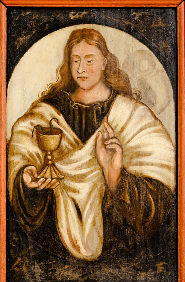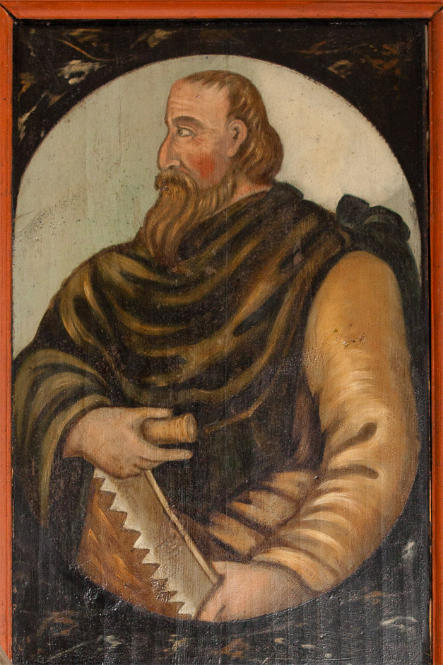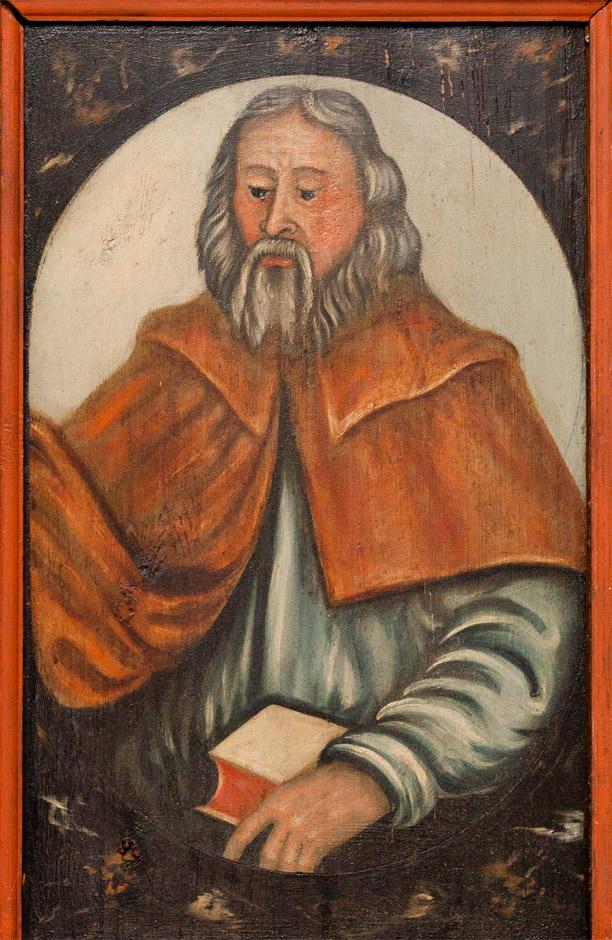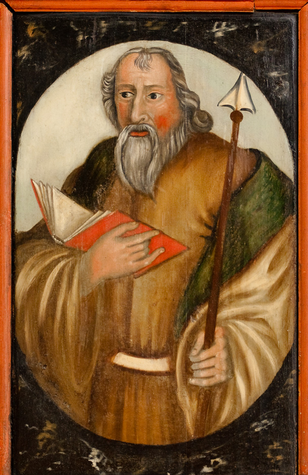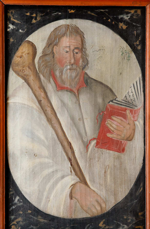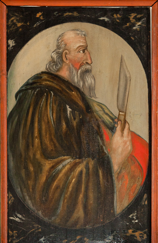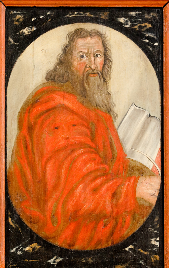 Dette pulpitur var før 1700 opsat i kirkens østende foran koret. Det er omtalt i et regnskab i 1688. Pulpituret har været flyttet og ombygg et flere gange - senest i 1952, da billederne blev restaureret. Nu er det opsat på vestvæggen og anvendes som orgelpulpitur. Billederne viser de 12 apostle med Kristus - Verdens Frelser - i midten. Under billedfelterne er anført givernes navne. De ses dog ikke på fotografierne. Det er: