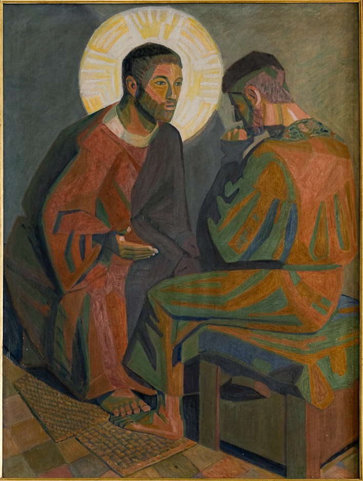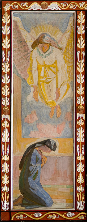 Billederne er malet af Niels Larsen Stevns i 1920. Motivet i storfeltet er Kristus og Nikodemus.I fløjene Bebudelsen og Kristus på korset.