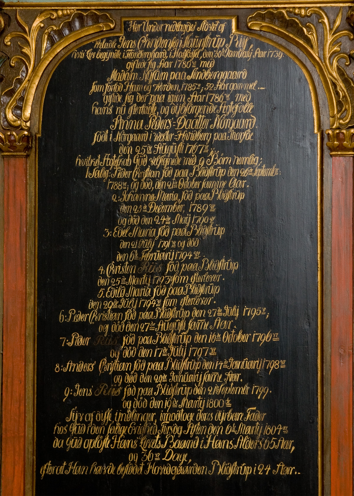 Epitafium over Jens Christensen Staunstrup Riis, 1739-1804. Tavlen er i Louix XVI stil.