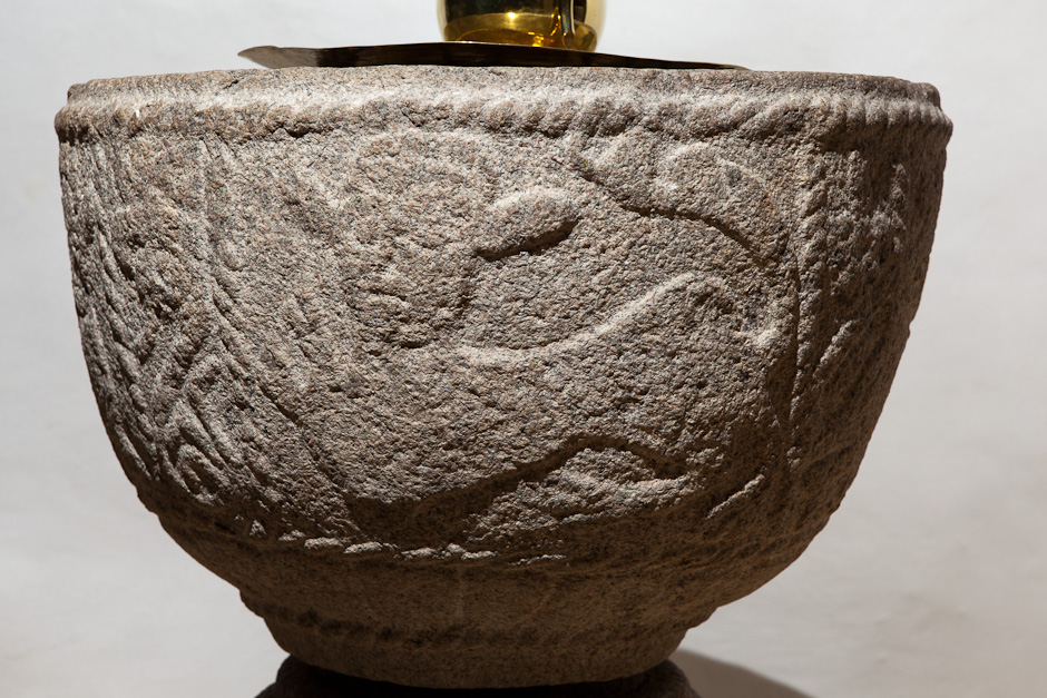 Foden er kummen fra en anden døbefont med mundingsprofil og liljer.