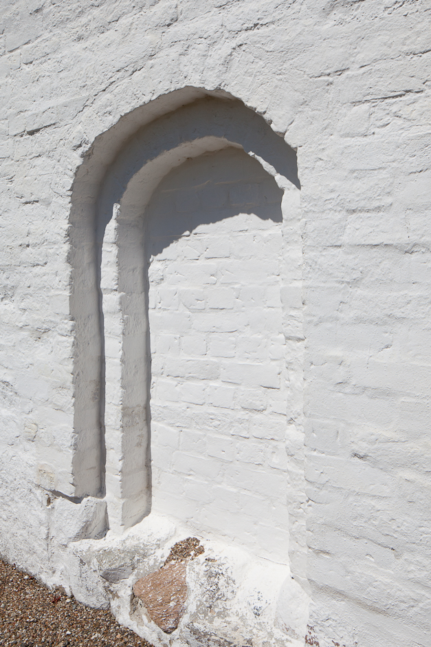 Norddøren er stadig i brug, mens syddøren er tilmuret. Den er dobbeltfalset med en flad bue.