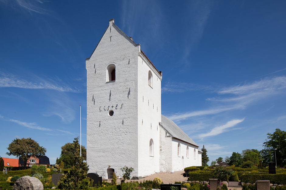 Våbenhuset på kirkens nordside er fra 1800-tallet. Tårnet er fra o. 1500. Initialerne CCS og ES står for Christen Christensen og Elisabeth Schrøder, Klarupgaard, som bekostede flere forbedringer ved kirken, bl.a. nye stolestader.