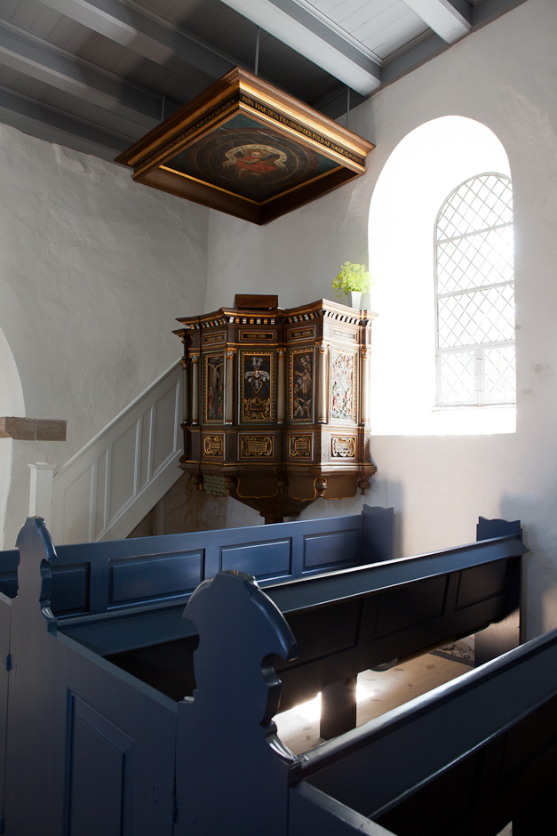 En lignende prædikestol, som sikkert er udført af samme værksted, findes i