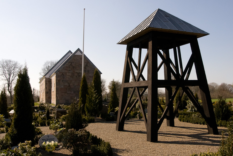Det særlige ved klokkestablen er, at det ikke er en bjælkekonstruktion, men at den er støbt i beton og som sådan den eneste af sin art i landet. Den er opført i 1931. Klokken er fra 1648 og støbt af Antoni Wiese.