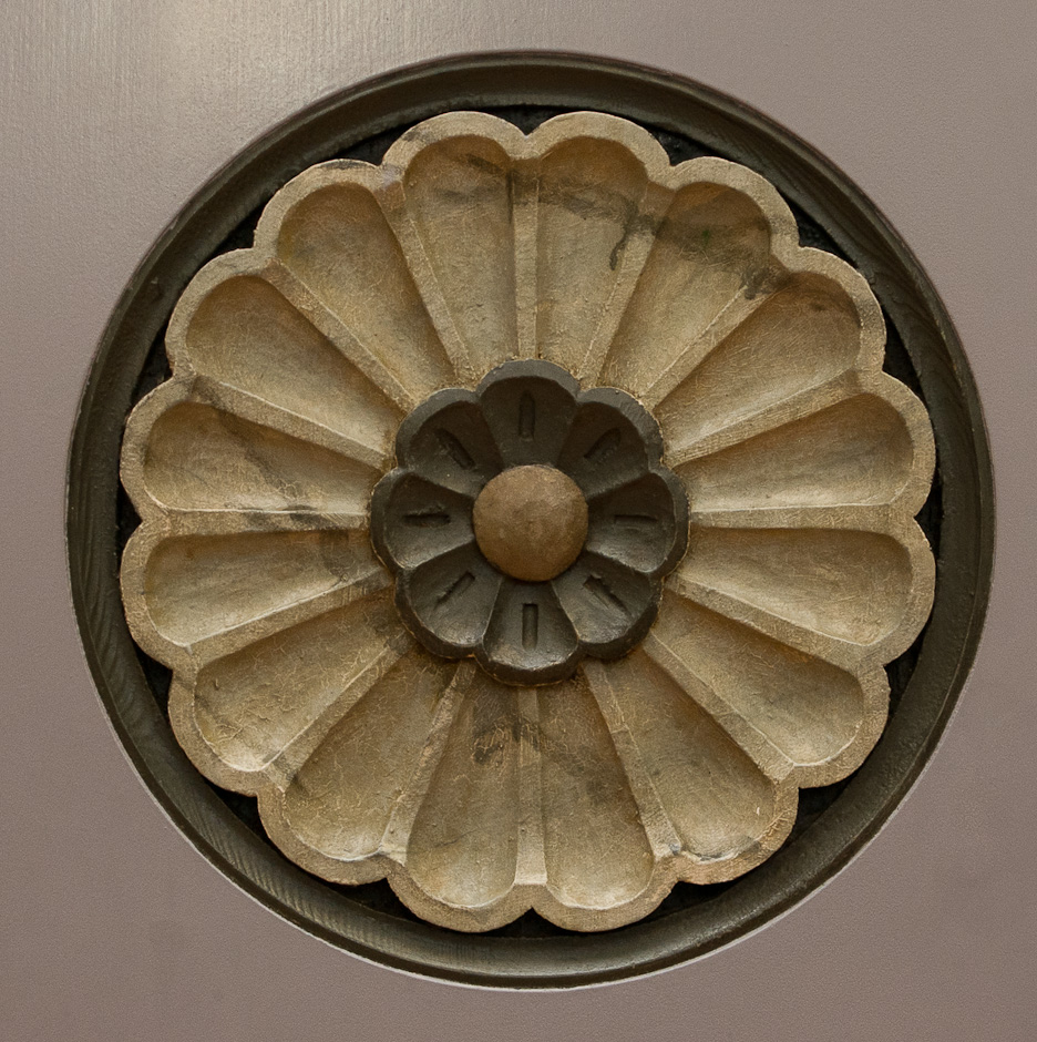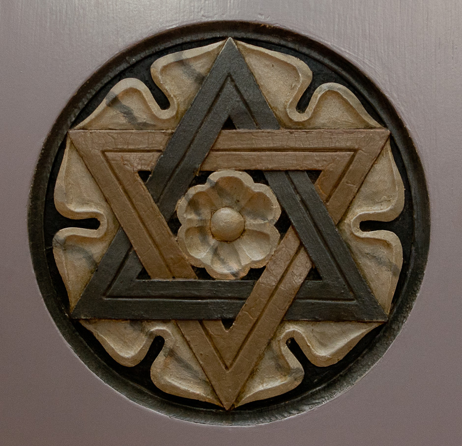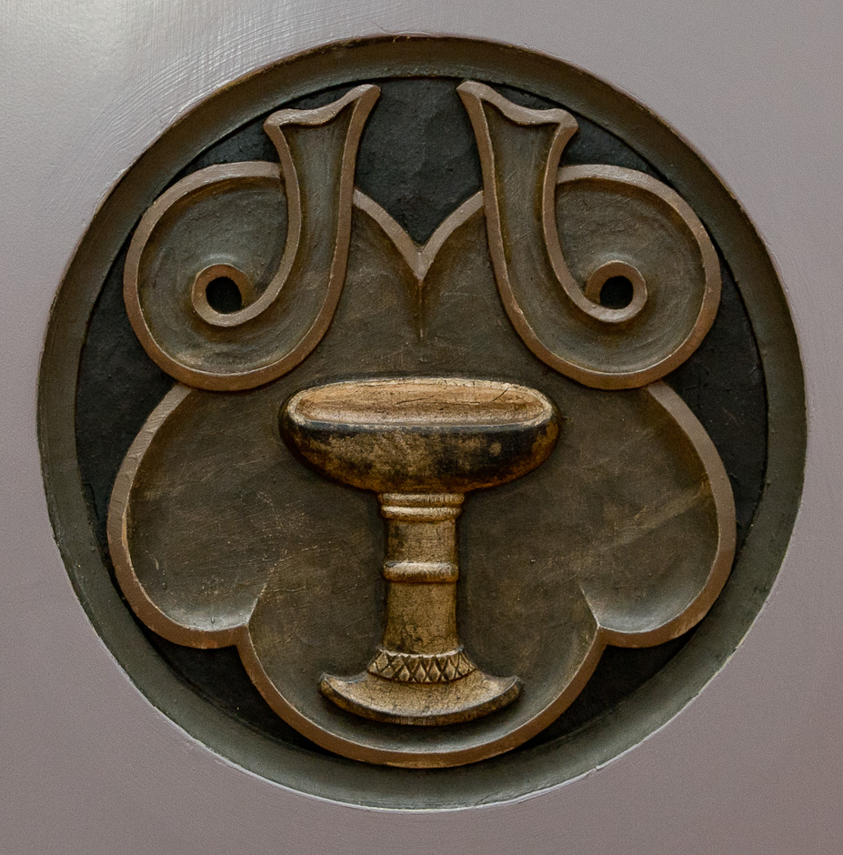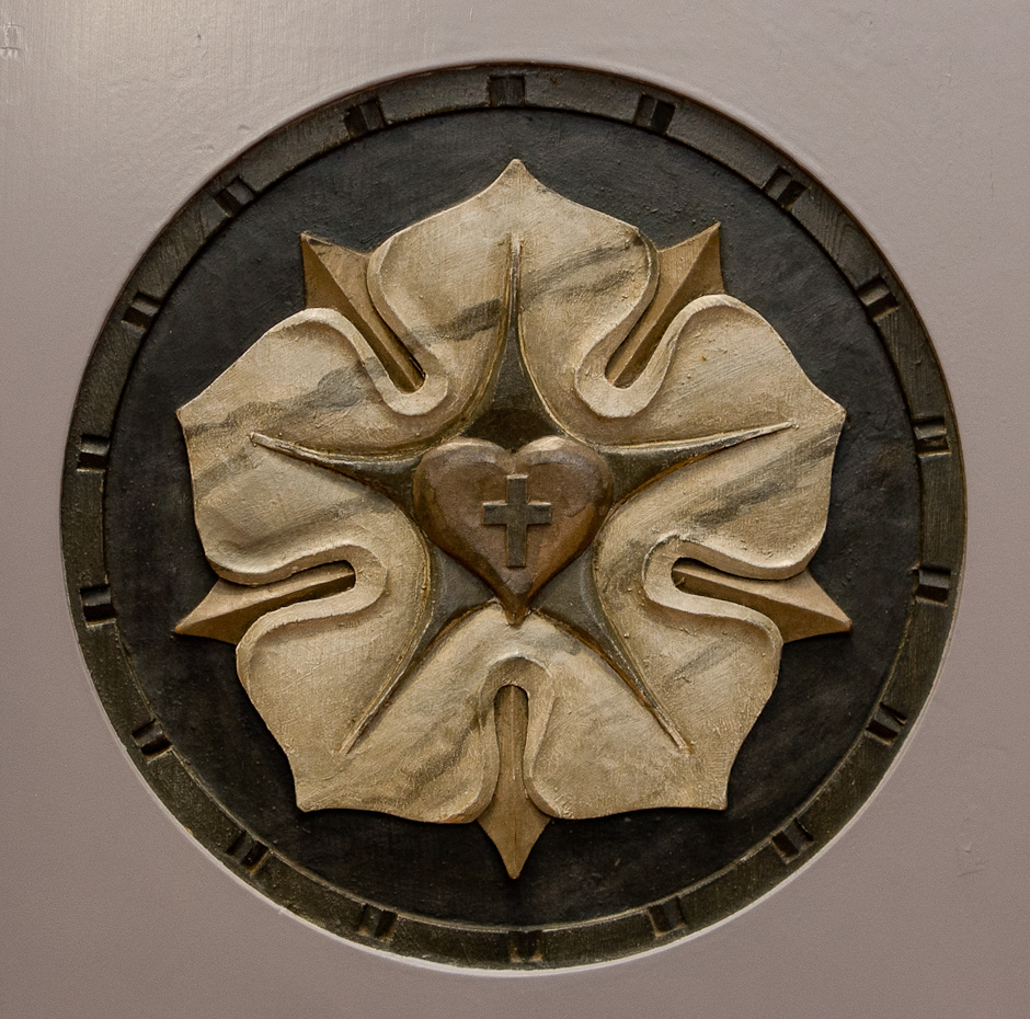 Reliefferne på bænkegavlene er inspireret af, at Luther brugte en rose på sin breve og i sine trykte bøger som tegn på deres ægthed. Den var designet o. 1530 af Lazarus Spengler, der var byskriver i Nürnberg. Lignende bænkegavle findes i