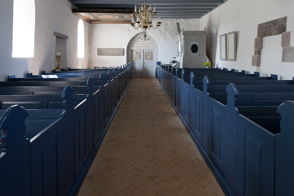 Skibet har bjælkeloft, mens koret har hvælv. Korbuen er udvidet i forbindelse med, at kor og skib er blevet gjort bredere - sikkert i middelalderen.