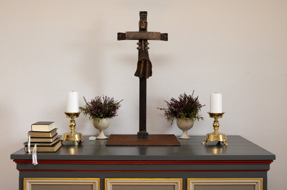 Alterbordet er opført af træ.