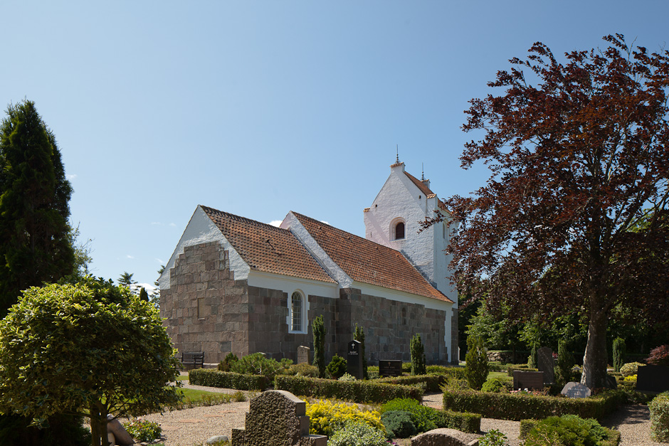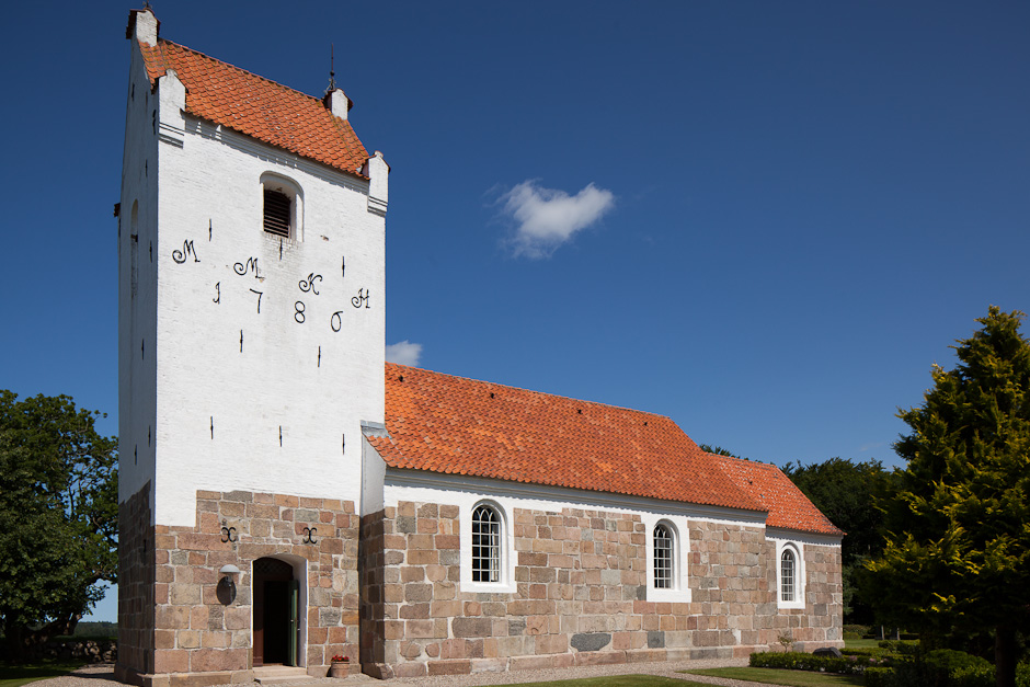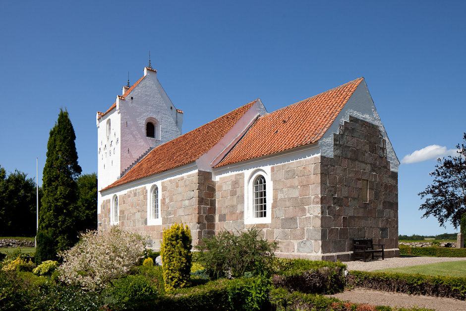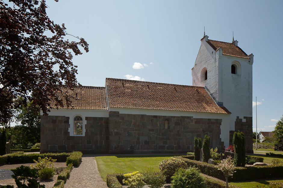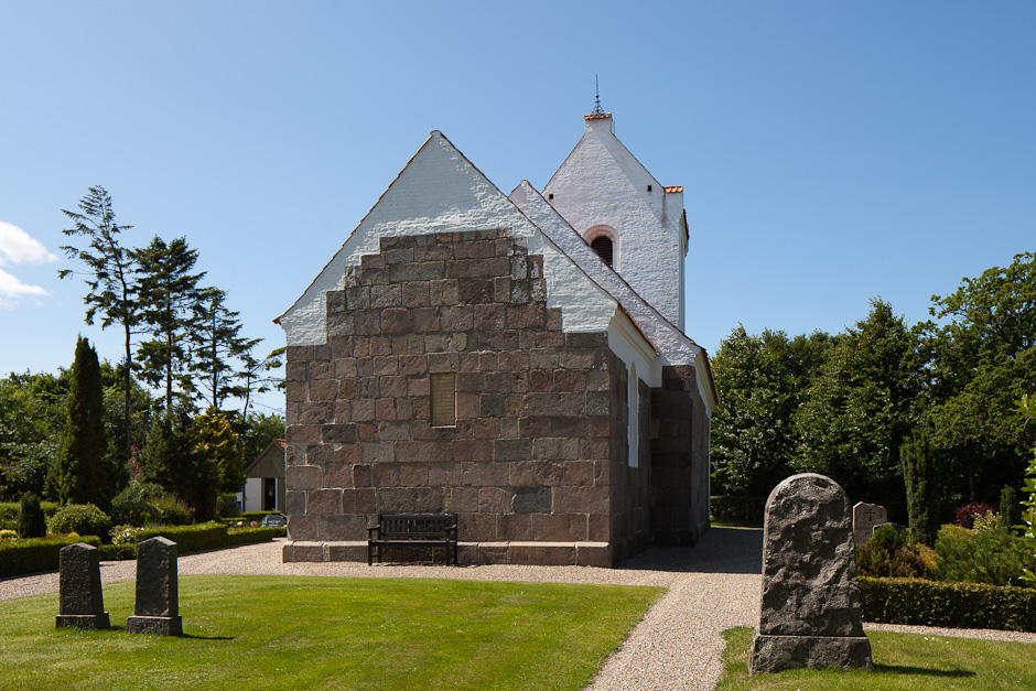 Den tilmurede norddør er bevaret samt et vindue midt på skibets nordside. Sokkelstenene har skråkant.