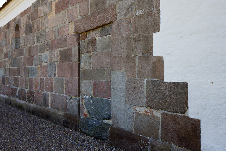 I korets østgavl ses spor af et nu tilmuret vindue.