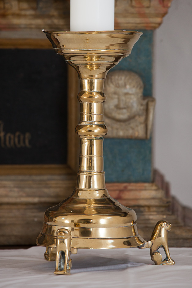 Alterbordet er muret, men beklædt med et panel.