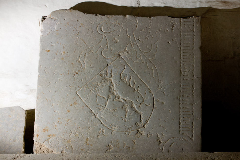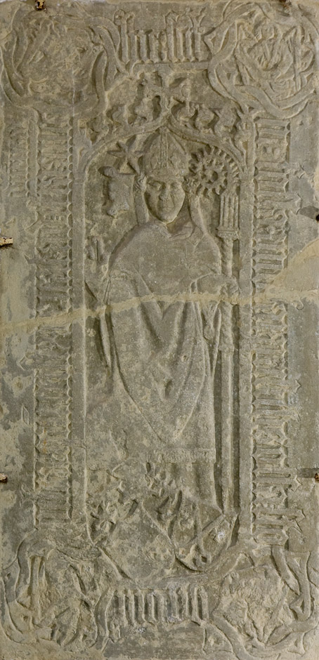 Niels Thorstenson. Stenen, der har et fint våbenskjold, er slidt og brudt i to stykker. Den er anbragt under herskabsstolen. Tekst: »Anno domini mccxcv obiit dns nicolaus thortstensone strennuus miles« (I det Herrens år 1395 døde den strænge ridder Niels Thorstenson.)
