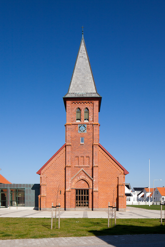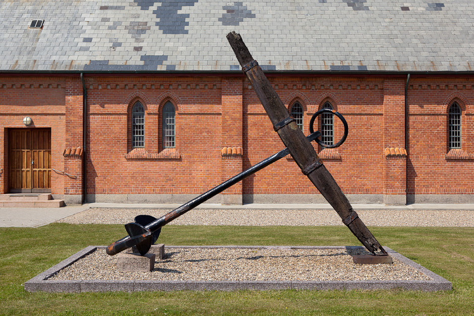 Det store anker foran kirken minder om byens nære tilknytning til havet.