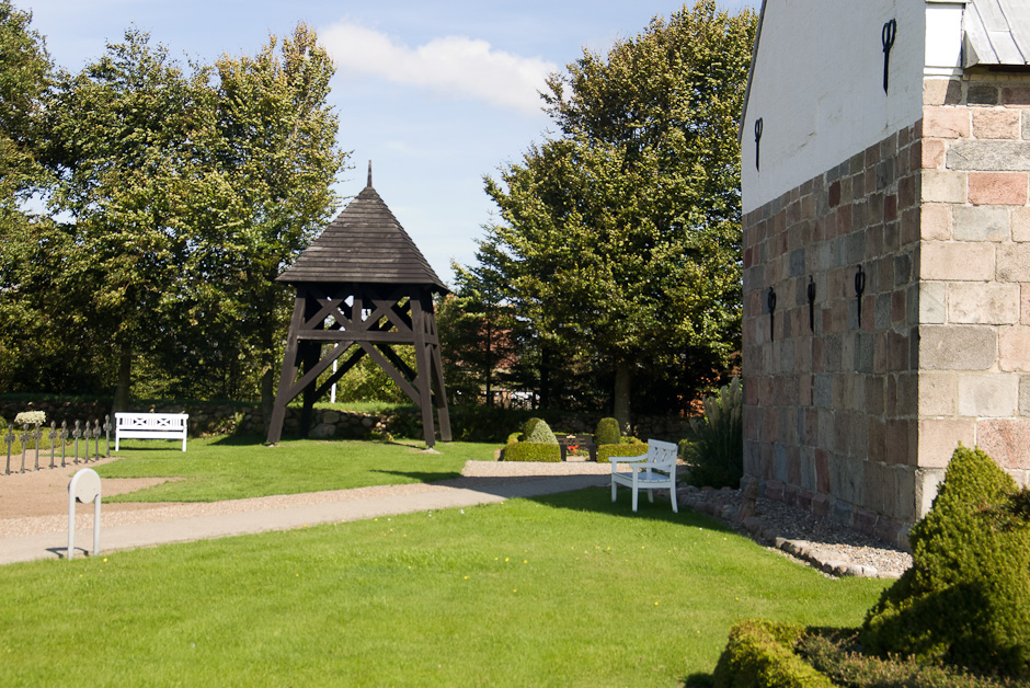 Klokkestablen er anbragt nordvest for kirken.