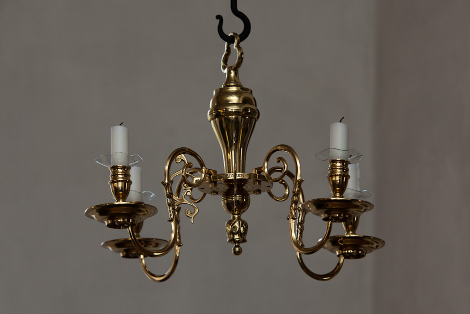 Lysekrone over dåbefonten er skænket af Karen Kirstine Andersen i 1937. Det er den yngste af kirkens lysekroner.