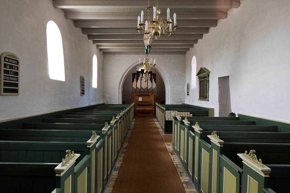 Ved en restaurering i 1968 fik kirken sine nuværende farver. Træværket var tidligere egetræsmalet. Bænkene, der er med låger, er fra 1800-tallet.