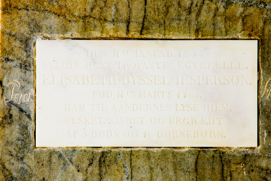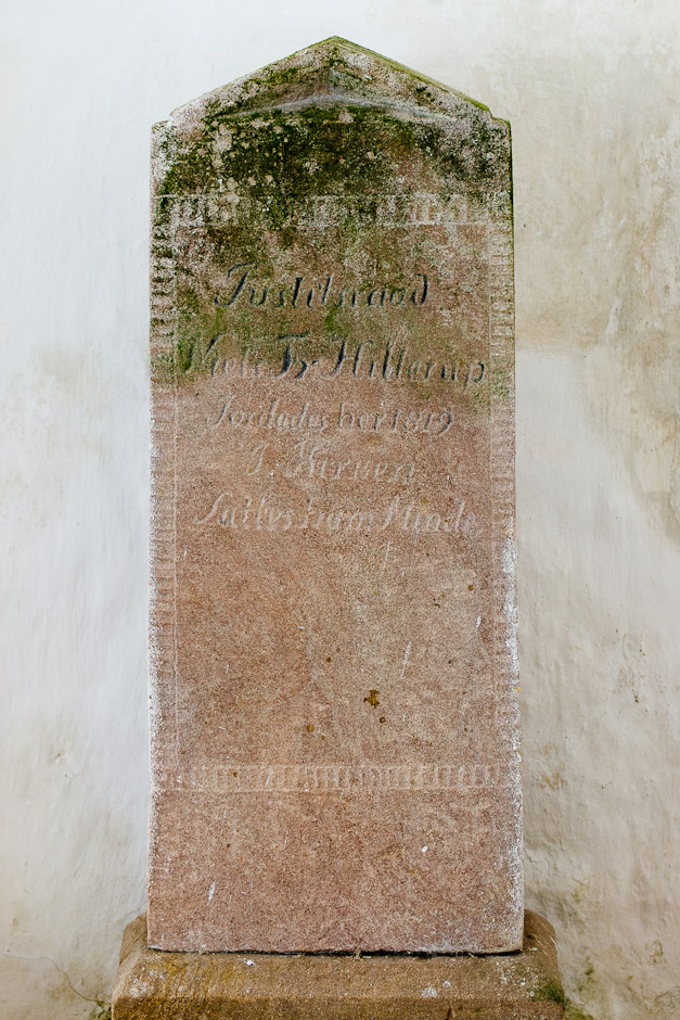 Gravsten i søndre sideskib. Tekst: