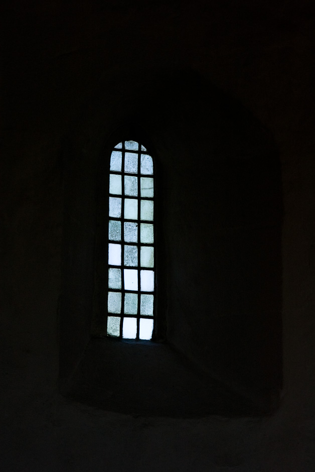 Det er samme vindue på de to billeder, men optaget på to forskellige måder, så man på det dette billede kan se den oprindelige træramme, der er skåret i en enkelt egeplanke, og så man på det næste tydeligt kan se grønlige blybundne vinduesglas. Vinduet, der sidder i skibets nordvæg, er et af de ældst bevarede kirkevinduer i Danmark.