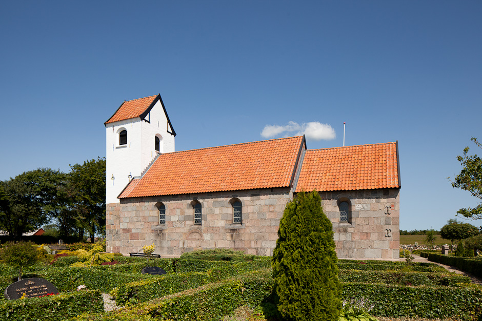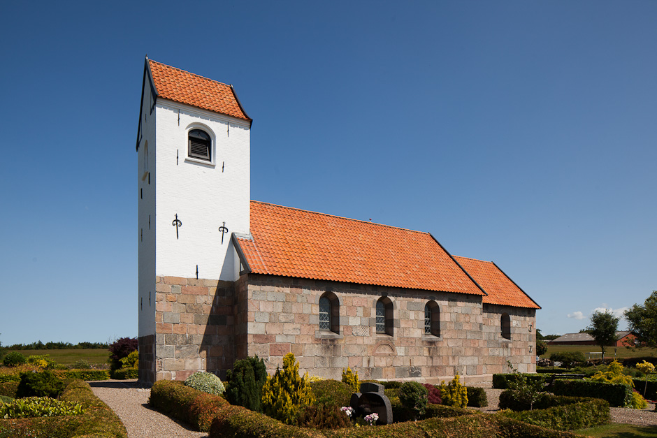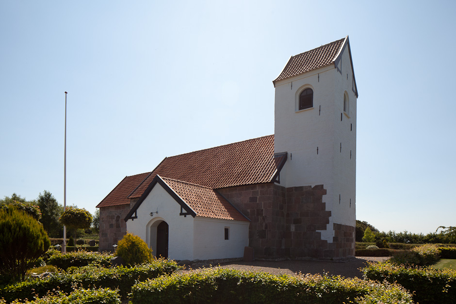 Skib og kor med store nyere vinduer. Murene blev kraftigt omsat i 1894. Der er ingen spor af syddøren.