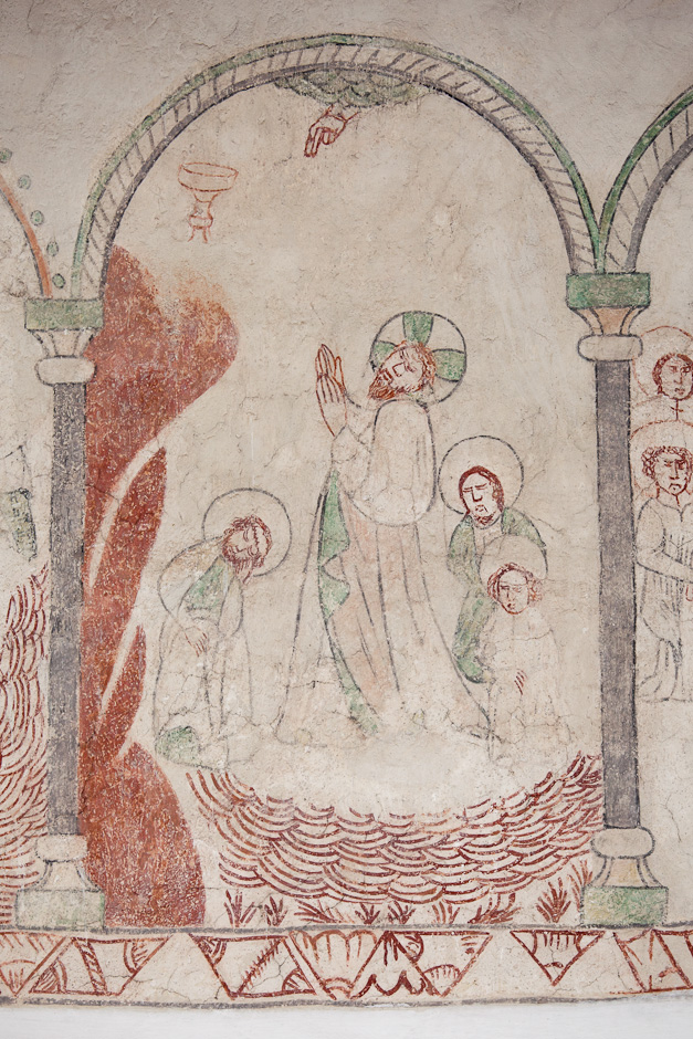 Frisen på skibets nordvæg er fra o. 1450, før kirken blev udvidet til klosterkirke og bygget højere. Kalkmalerierne har sikkert været kalket over, da epitafiet blev ophængt i 1600-tallet. De blev afdækket af E. Rothe i 1905-06.