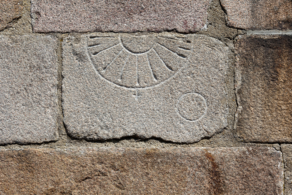 Solur på granitkvader nær den plads, hvor den nu forsvundne syddør har været. Soluret viser de kanoniske tider og har ikke timestreger.