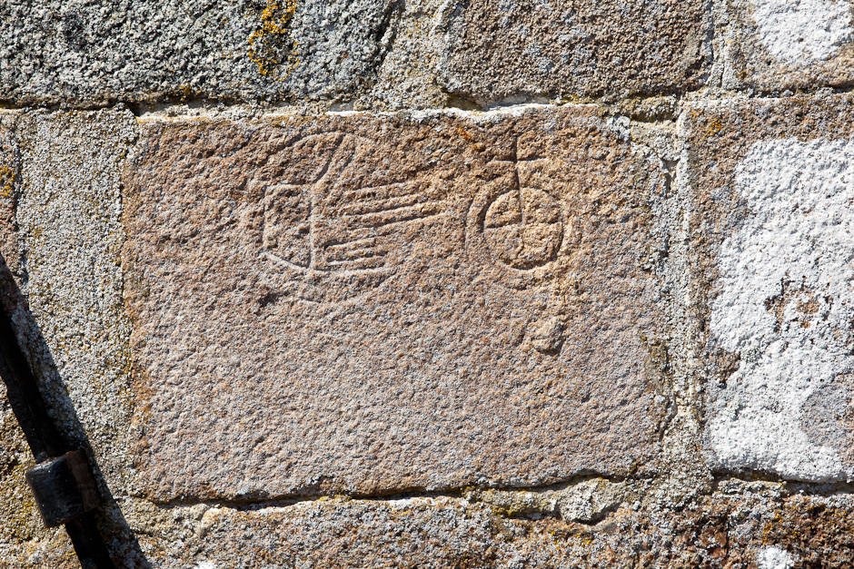 Til højre på stenen en cirkel, der er inddelt i tre felter. Det symboliserer jorden med de tre verdensdele, der var kendte i middelalderen. Jorden er omgivet af verdenshavet, og øverst er det prydet med et kors. Til venstre Guds velsignende hånd. Stenen er anbragt i korets østmur.