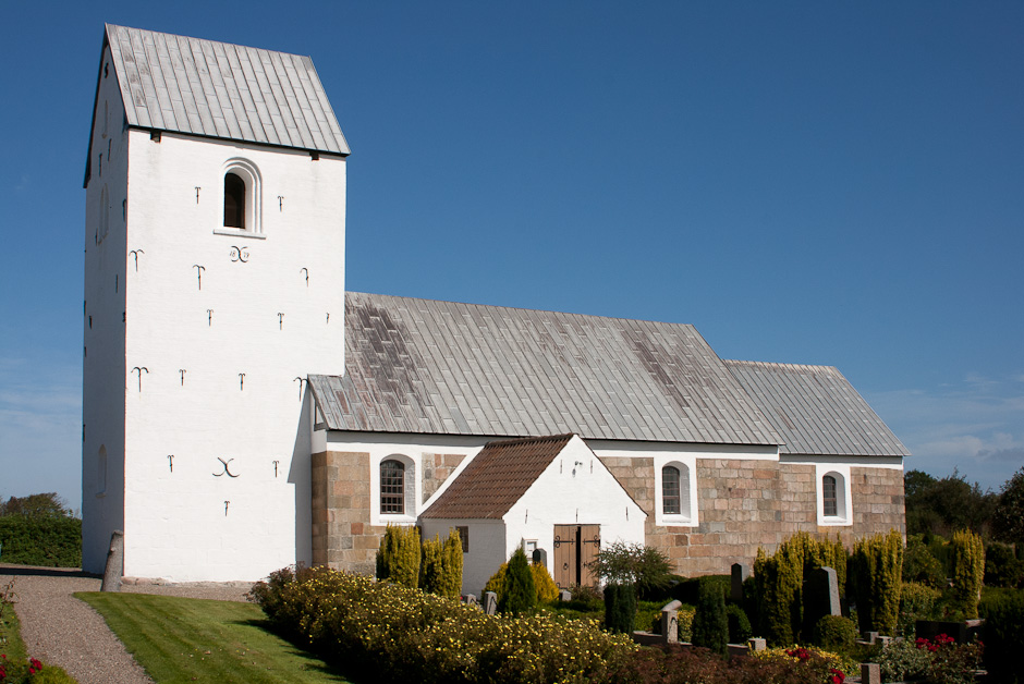 Det nederste af det gotiske tårn er opført af de nedbrudte granitkvadre fra skibets vestgavl - ellers af gule munkesten. Gavlene har en gang haft kamtakker. Kun østgavlen har blændinger. De tre vinduer i skibet mod syd og de to mod nord er fra en stor istandsættelse af kirken i 1939.