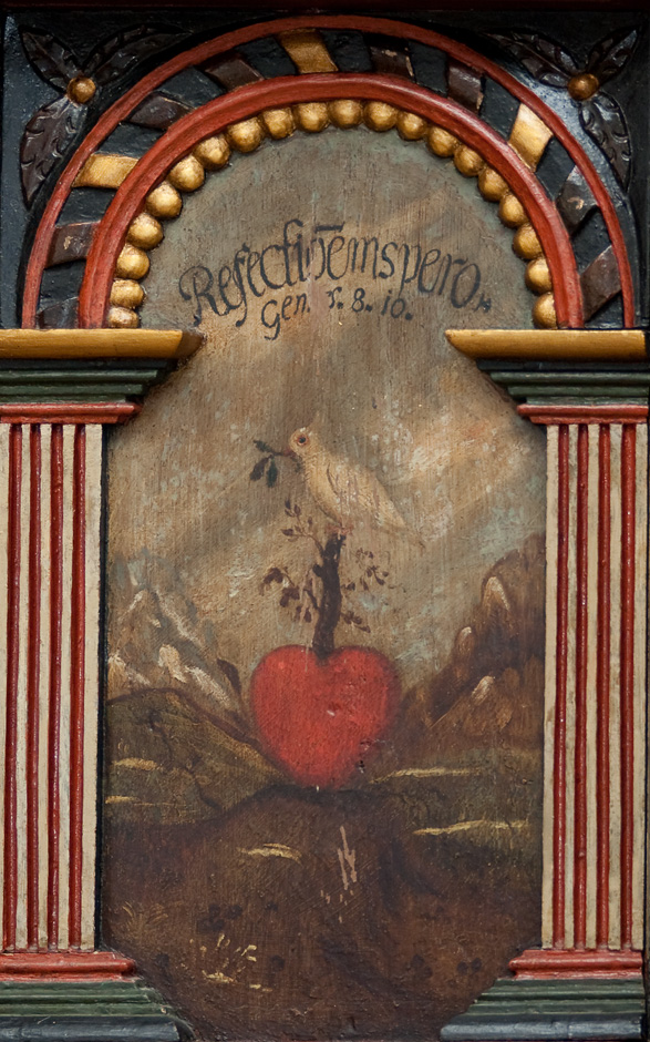 1. Mos. 8,10: »Han (Noa) ventede i syv dage til og sendte duen ud af arken igen.« I postamentfeltet et citat fra Ps. 94.